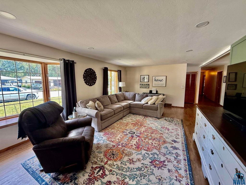 Step inside this beautifully maintained home featuring thoughtful updates, generous living spaces, and modern conveniences throughout.The heart of the home boasts quartz counters, custom cabinetry, stylish tile backsplash, recessed lighting, and newer stainless steel appliances (2019). Double ovens, a beverage fridge, and durable LVP flooring make this kitchen both functional and stunning. The main living room is filled with natural light from bay windows and features a cozy wood-burning fireplace with built-in shelving. A second living room offers another wood-burning fireplace and a walk-out sliding door, creating the perfect balance between comfort and indoor-outdoor living. Primary suite includes a walk-in closet and a private 3/4 bath (updated in 2019). Two additional main-floor bedrooms with new carpet (2019), one featuring a ceiling fan and the other with recessed lighting. A basement bedroom provides flexibility for guests, home office, or hobbies. Main-floor laundry with cabinets for storage. The full finished basement includes a kitchenette and full bathroom, making it an excellent space for entertaining, hosting guests, or creating an in-law suite. This home blends classic charm with modern finishes, offering multiple living spaces, updated features, and room to grow!