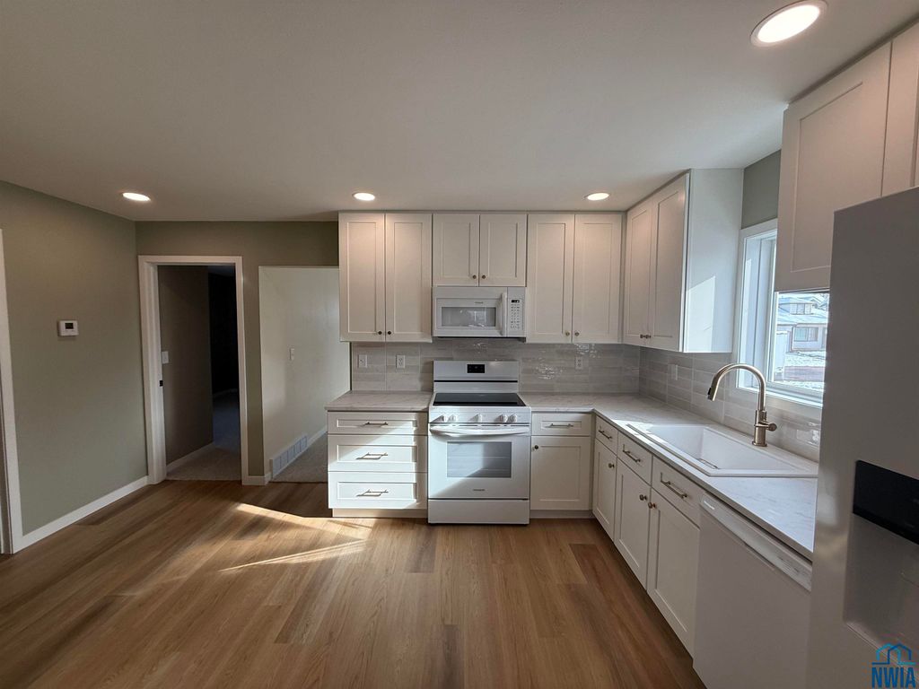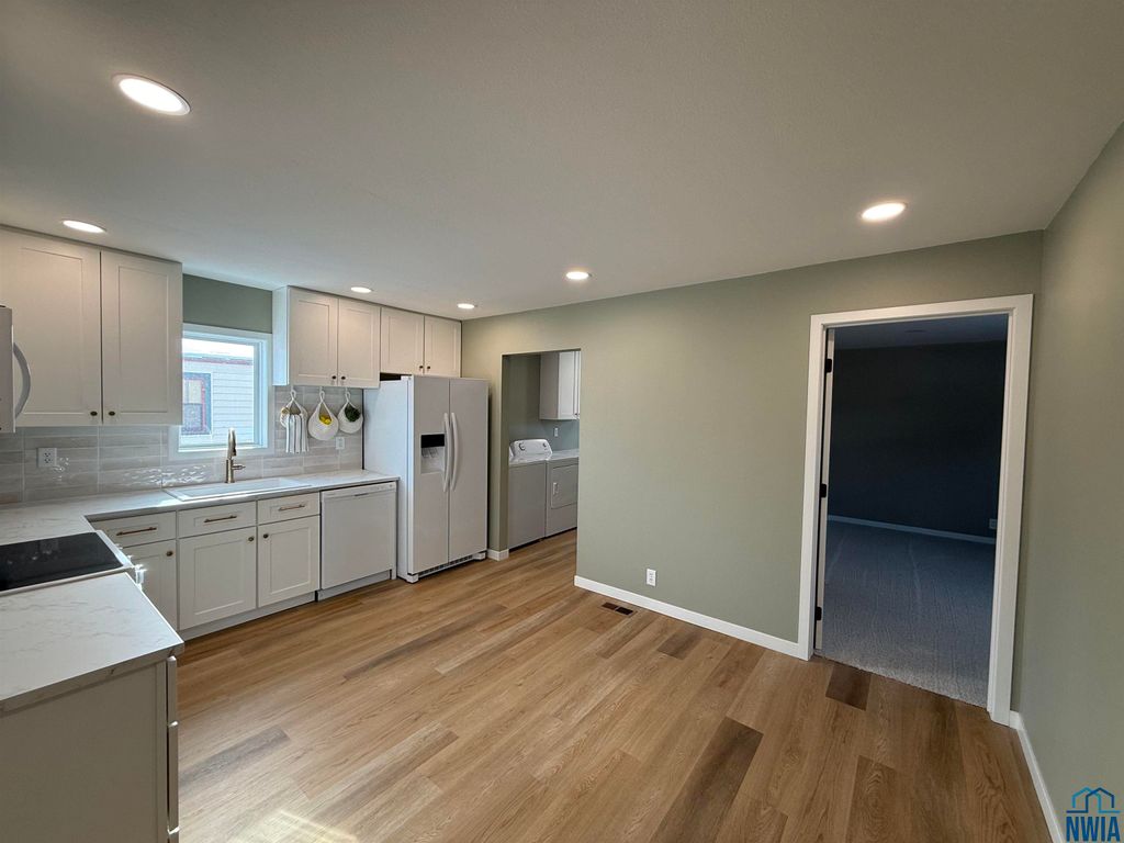 This 2-bedroom, 1 bath move-in ready property has 880 square feet of modern living space. It features a newly updated kitchen with brand-new cabinets and appliances, an updated full bathroom with a tub-shower combination, and new laminate and carpet flooring throughout the main floor. The laundry area is equipped with a new washer and dryer for added convenience. The home has been extensively renovated with an updated high-efficiency furnace and a new central air conditioning unit, along with new insulation, sheetrock, electrical, plumbing, windows and window treatments, and recessed ceiling lights. An unfinished basement provides plenty of additional storage space. Exterior features include a newly developed lawn and a spacious 12x30 shed built in 2022 that offers excellent storage or workshop space and has been freshly painted to complement the new maintenance-free board-and-batten siding on the house. This property provides a turnkey opportunity for buyers seeking a fully modernized home with quality upgrades.