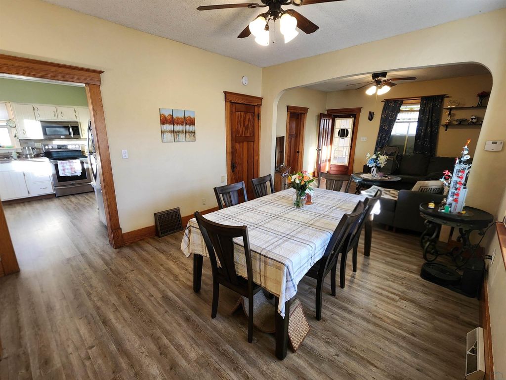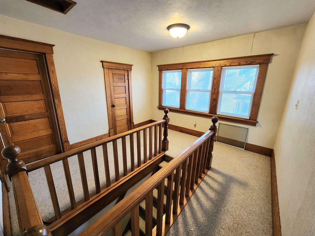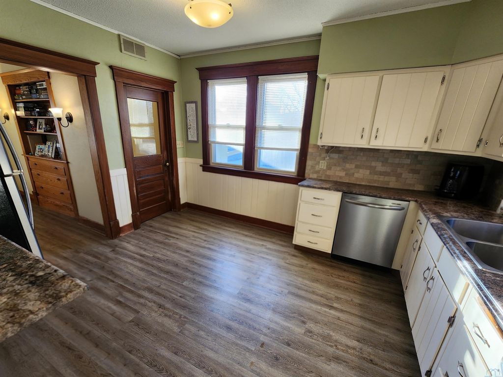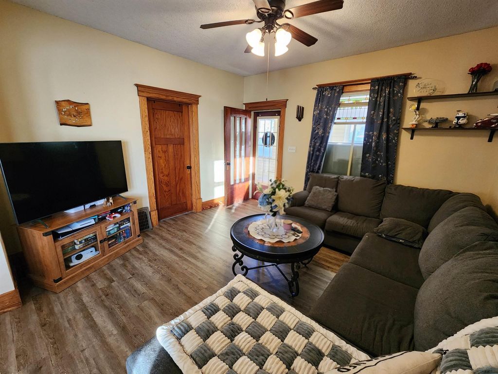 This move-in ready four-bedroom, two-bath, two-story home offers space, character, and updates in Sioux Center, Iowa. The main floor features new flooring, creating a fresh feel while still preserving the home's original charm. You'll love the enclosed porch, along with the beautiful original woodwork in excellent condition, a stained-glass window, window seat and numerous built-ins that add warmth, character, and timeless appeal. With four bedrooms, a functional two-bath layout, and a two-stall garage, this home offers both charm and practicality. Utilities: City of Sioux Center $250/month Surrounded by mature trees and ready for its next owner, this is a home that truly stands out. Schedule your showing today.