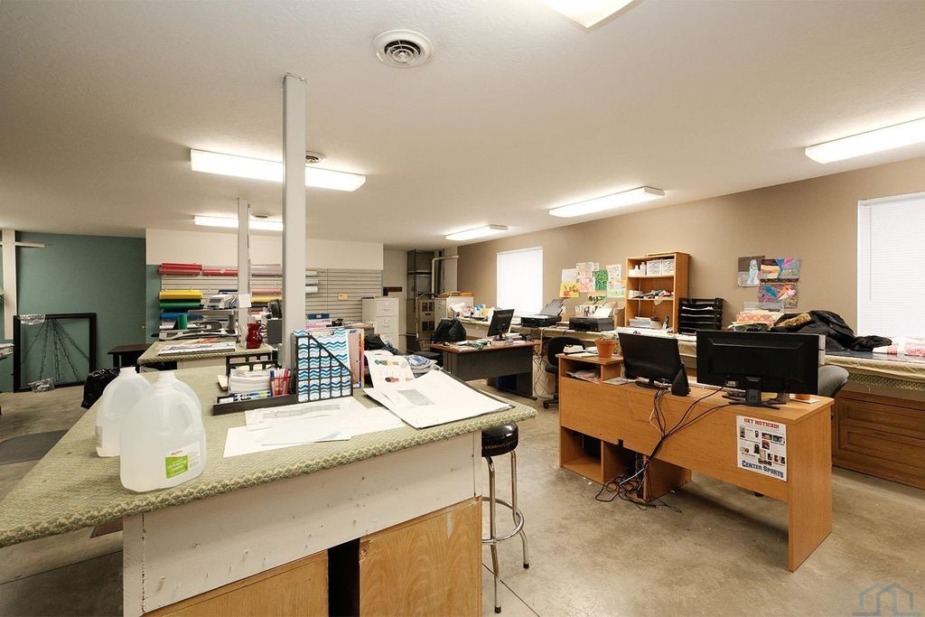 An exceptional opportunity to expand or relocate your business in one of Sioux Center's most visible and active commercial corridors! This impressive steel-frame and metal-clad building, constructed in 1998, reflects premier construction standards and enduring quality craftsmanship. Offering over 11,000 square feet of well-designed office and retail space, the property delivers both functionality and adaptability for a wide range of professional, retail, or service-oriented uses. The interior features a large, open floor plan complemented by numerous private offices, allowing for efficient workflow, customization, and expansion. Three loading docks, generous warehouse and storage areas, and convenient on-site customer parking enhance the building's operational efficiency. Positioned in a progressive and growing community, this location provides excellent exposure and accessibility for both clients and employees. The property has been consistently well-maintained and offers infrastructure designed to support long-term use. Multi-zoned heating and cooling systems promote energy efficiency and comfort throughout the building, while a central vacuum system adds to overall convenience. Office and restroom areas are in good condition and accessible to the public, supporting professional and customer-focused operations. A mezzanine level expands the usable space and includes additional storage, office space, and a break room, offering flexibility for management, administrative functions, or staff amenities. The building's layout allows for seamless adaptation to a variety of business models. The exterior is in excellent condition, featuring properly graded grounds, lawn irrigation, and well-maintained landscaping that contributes to strong curb appeal. Located within an active commercial zone, the property benefits from high visibility, steady traffic, and a strong surrounding business presence!