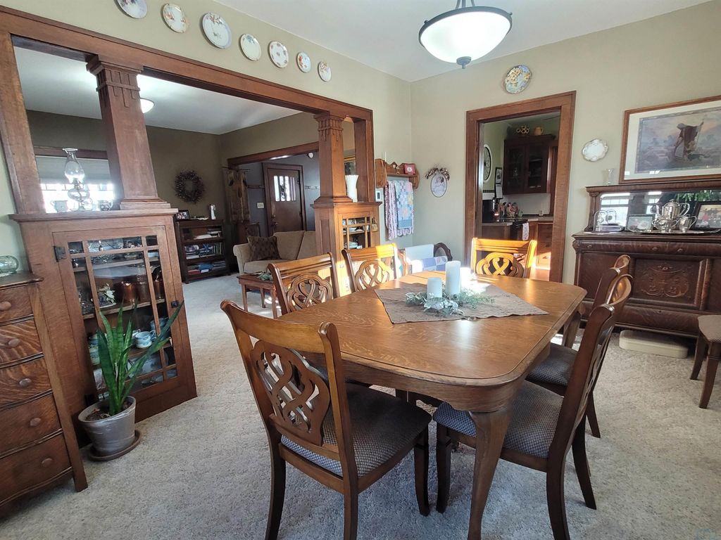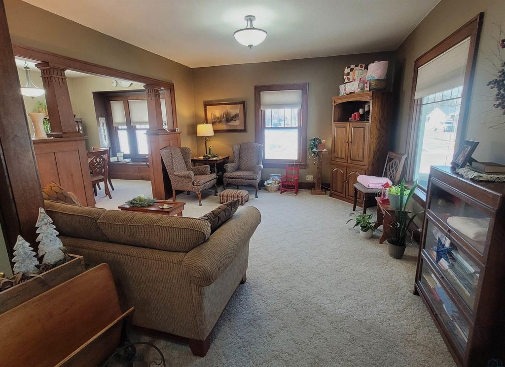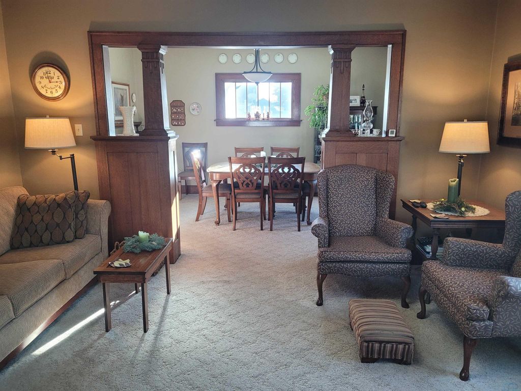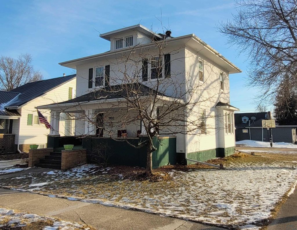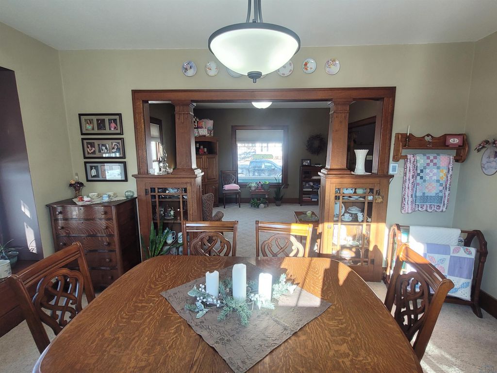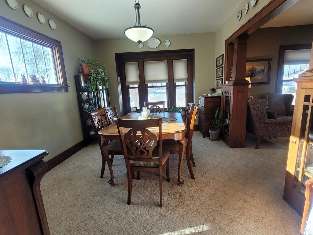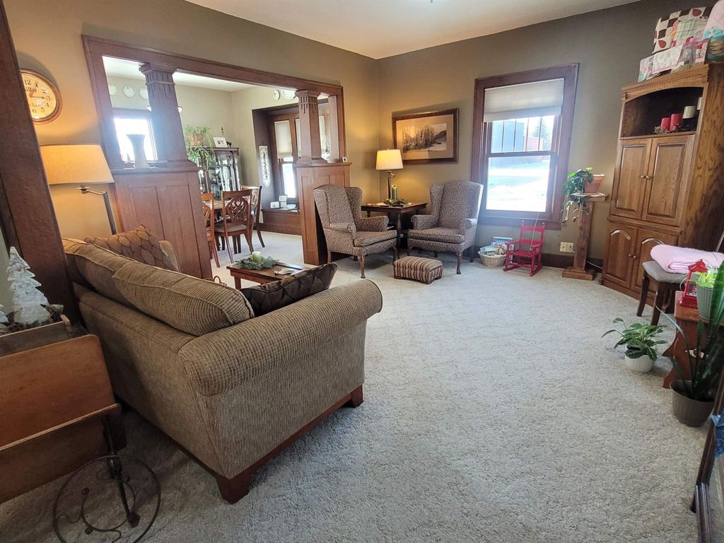 From the moment you enter the door of this beautiful craftsman style, two story home, you will appreciate all the effort the owners have put into maintaining it. The home is neat, clean and full of the original craftsman style. There is a total of 1,880 square feet of finished living space to include four bedrooms and one and one half bathrooms. All four nice sized bedrooms are on the upper floor along with a remodeled full bathroom. The main floor features a living room, dining room, kitchen, foyer and a conveinent half bath. The oak bookcase colonnade with glass doors in the dining area will make a great place to display your collectable items. There also is window seat with extra storage built into it. The house has a great layout and features a beautiful kitchen with exceptionally maintained, original oak cabinets, some of which have glass doors. The center island will make a great place for food prep or just a great place to eat a quick meal. For those who desire additional shared living space, the basement has a large family room. The home is located on a nice corner lot in the center of town with a large park just a couple of blocks away. The local community school offers the benefit of a bus stop right at your corner. In recent years there have been a lot of new building developments in the immediate area to keep the neighborhood fresh and new. The house has a nice rear deck to enjoy the evening sunset from. The detached double stall garage was built in 1992 and would make a great place to have a hobby shop if the buyer would prefer to finish off the interior. The covered front porch is large and will make a great place to enjoy the pleasant outdoors during the warmer seasons of the year. The windows were replaced in 2020 with a style consistant with the craftsman design of the home. Utility monthly average: Gas, electric, water, sewer trash and recycling $267.00.