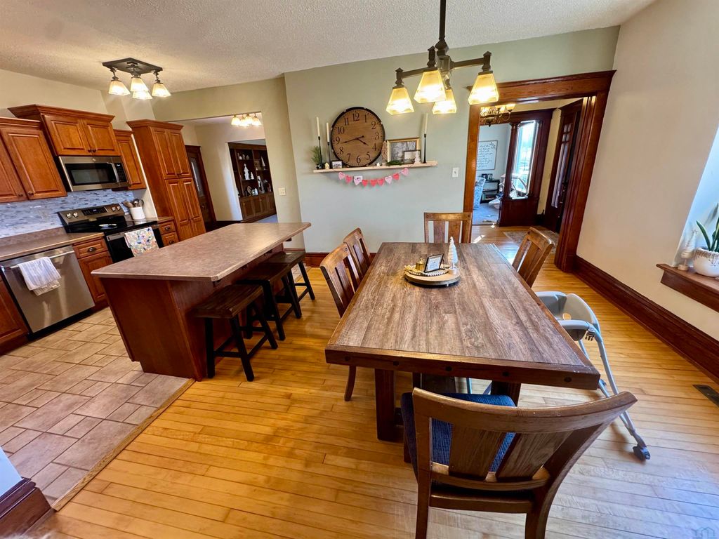 Step into timeless elegance with this dillegently cared-for 1900 Craftsman-style home in the heart of Alton. From the moment you arrive, you'll notice the professionally updated landscaping that perfectly complements the home's classic charm and inviting curb appeal. Inside, original hardwood floors, intricate woodwork, and beautiful built-ins showcase the character of its era, while thoughtful cosmetic updates and a newly opened floor plan blend historic style with modern living. This five-bedroom, two and a half-bath residence features a stunning updated kitchen, a new roof, and a finished basement that adds valuable living space. Set on a spacious quarter-acre lot, the property offers room to spread out with an expansive 17x25 back deck ideal for entertaining, a double detached heated garage, extra parking, alley access, and a garden shed. The whole-home humidifier enhances air quality and keeps the home feeling cozy in every season. Located just minutes from schools and city parks, this move-in-ready home delivers elegance, character, and comfort in every detail.