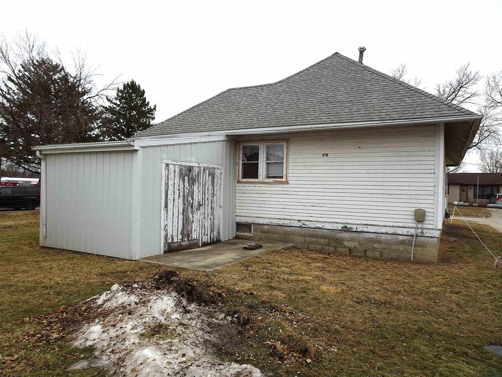 This 2-bedroom, 1-bath home is perfect for first-time buyers or those looking for an income-producing property. The main level features a kitchen, living room, and dining area, along with a porch to enjoy your morning coffee. Both bedrooms and the bathroom are on the main level as well. The unfinished basement offers laundry facilities and plenty of potential for additional storage or living space. With an attached garage, a lean-to for extra parking, and a small shed, you'll have all the space you need for your vehicles and tools. Don't miss out on this opportunity! UTILITIES INFO - AVERAGE MONTHLY TOTAL: $199.01 - Gas/Electric: MidAmerican Energy; Garbage/Recycling: City of Sheldon; Water/Sewer: City of Sheldon