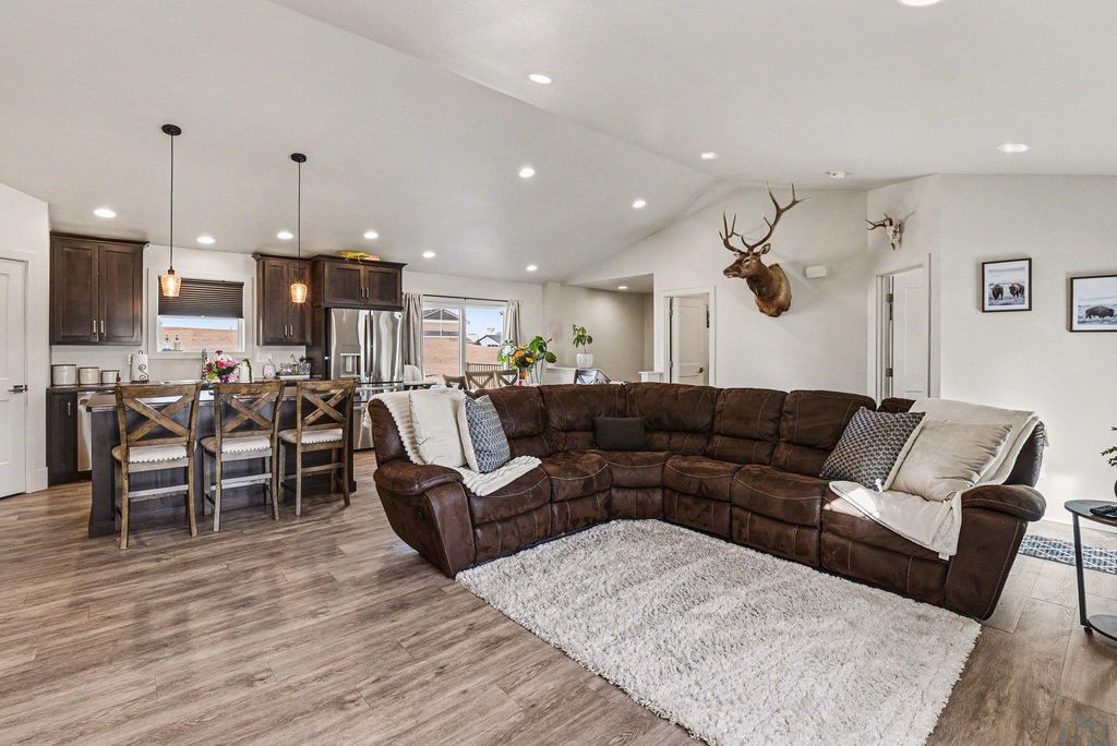 Welcome to this beautifully designed 4-bedroom, 3-bathroom home built in 2021, offering modern comfort and thoughtful upgrades throughout. The inviting open floor plan creates a seamless flow between the living, dining, and kitchen areas perfect for everyday living and entertaining. The spacious kitchen features a walk-in pantry, ample cabinetry, and generous counter space to meet all your storage and cooking needs. Enjoy cozy evenings by one of the two fireplaces, adding warmth and charm to both the main living area and additional gathering space. Step outside to a large composite deck, perfect for relaxing, grilling, or hosting guests while enjoying low-maintenance outdoor living. Convenience is key with main floor laundry, plus additional washer and dryer hookups in the finished, heated garage ideal for hobby space, extra appliances, or added flexibility. The finished and heated garage provides year-round comfort and functionality, whether for parking, projects, or storage. With stylish finishes, flexible living spaces, and modern efficiency, this nearly new home offers the perfect blend of comfort and sophistication. Don't miss your opportunity to make it yours!