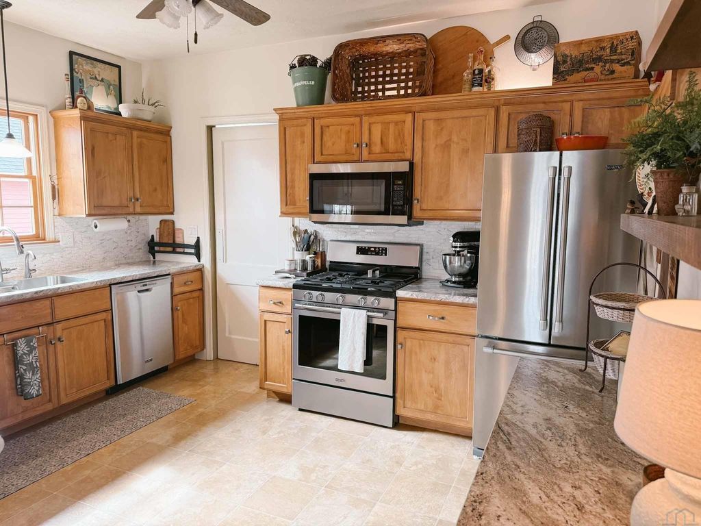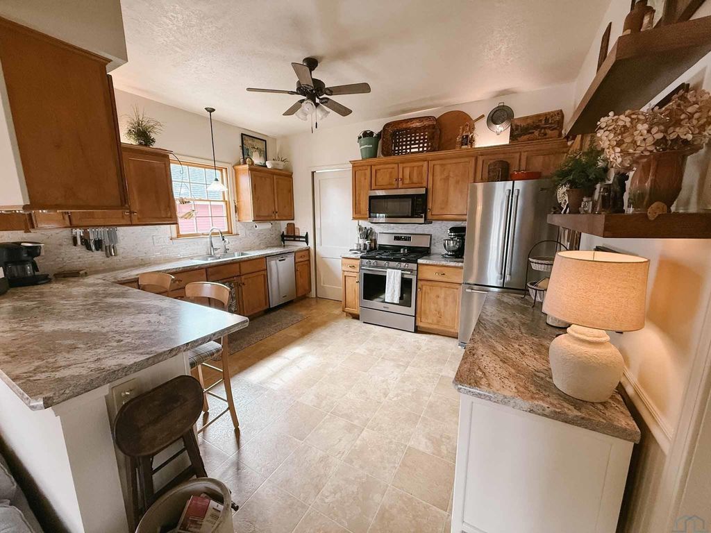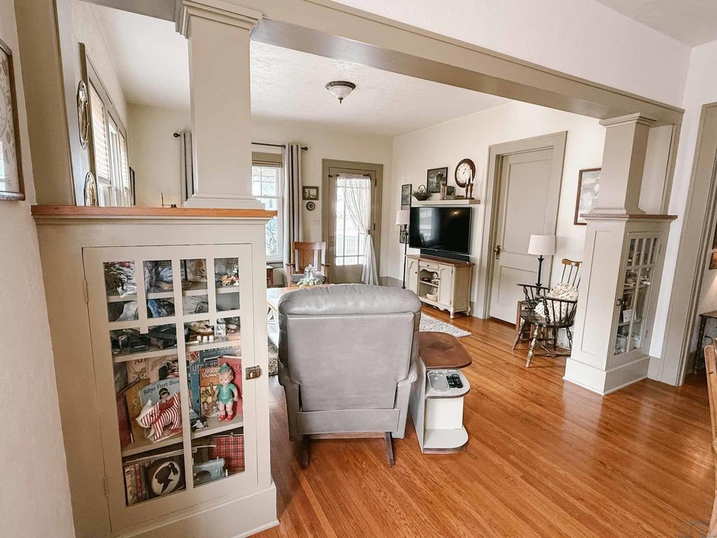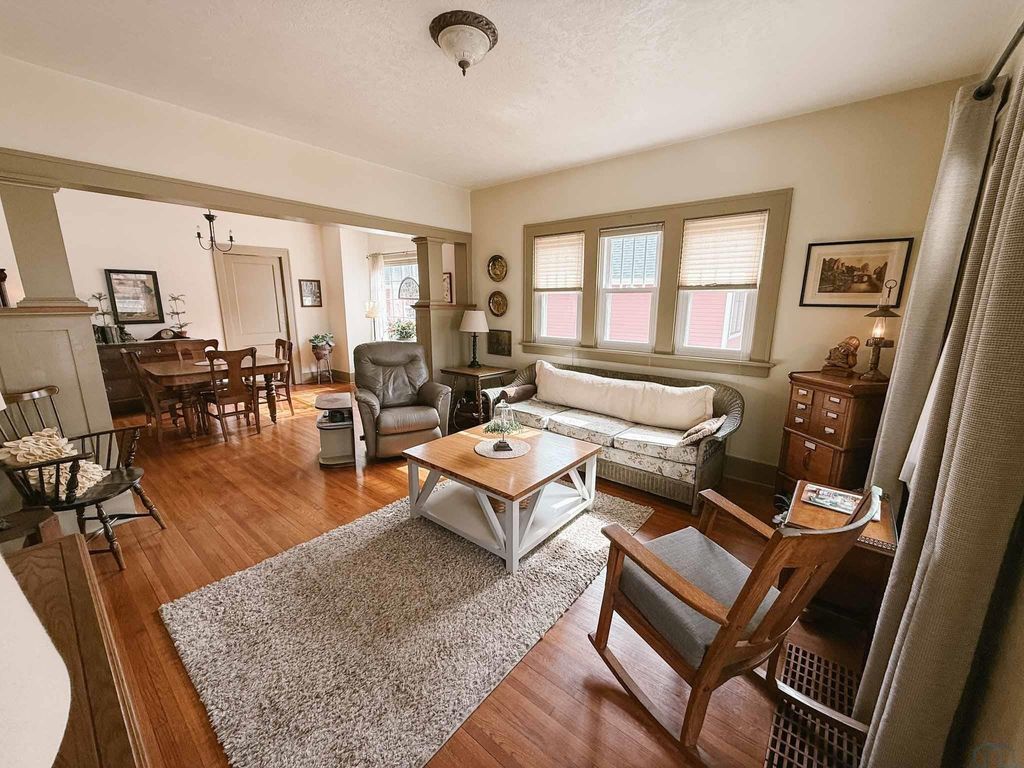 Right in the heart of downtown Orange City, 413 Central Ave SE is one of those homes that just FEELS SPECIAL the moment you walk up. Built in 1929, this bungalow is full of the kind of character you simply can't recreate"”hardwood floors, gorgeous painted trim, unique swivel doors, and thoughtful built-ins that offer more storage than you'd expect. And the location? It's hard to beat. You're just steps from Northwestern College and an easy stroll to all the shops and energy of downtown. Inside, the home strikes a great balance between historic charm and smart updates. Fresh interior paint, replaced windows, updated HVAC, electrical, and plumbing give you peace of mind, while the updated kitchen and spacious family room addition make the layout feel comfortable and functional for today's lifestyle. With two bedrooms and two baths, it's the perfect size"”manageable, but with room to spread out. The covered front porch is as inviting as they come, and the rear deck feels like your own private retreat"”ideal for hosting friends or enjoying a quiet evening. Alley access leads to an oversized double garage with extra storage and a workbench, and the full unfinished basement offers even more storage or the opportunity to finish it exactly how you'd like. This is classic bungalow living, in one of the best spots in town.